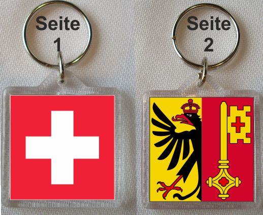 Dieser Schlüsselanhänger Genf / Schweiz, macht Ihren Schlüsselbund zum echten Blickfang. Die „Fahne“ der Schweiz und vom Genf haben eine Grösse von ca. 34 x 34 mm.